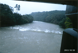 | ※「宇治橋」の下の五十鈴川は雨で荒れている。普段の川と様変り、音を立てて流れていた。 |