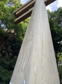 三の鳥居も、台湾檜 (タイヒ) だったが、2008年 調査で柱に傷みが進んでいることがわかってから幾度かの補強工事の末、2016年 木曽桧 (尾州) で建替