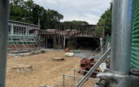 解体中のバリケードから覗く